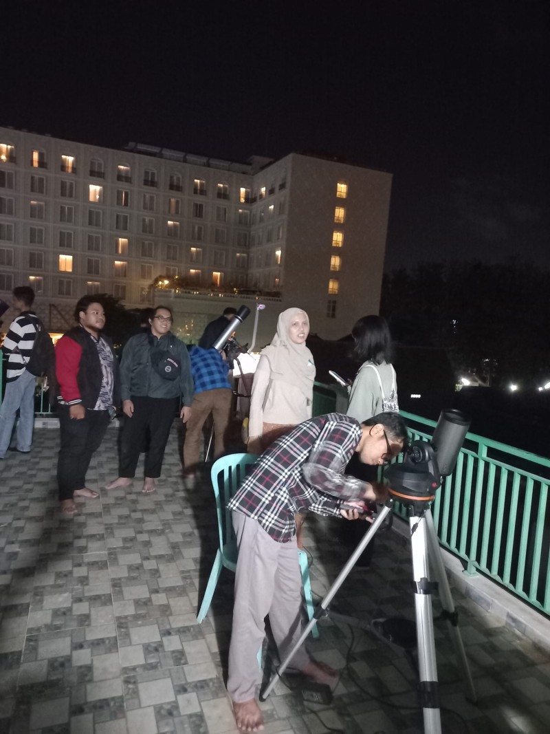 Setidaknya 12 teleskop telah disiapkan oleh panitia berupa 5 teleskop komputerized dan 7 teleskop manual. Namun karena keterbatasan operator panitia hanya memasang 5 teleskop komputerized dan 2 teleskop manual termasuk 1 teleskop untuk live streaming. Sejak arena dibuka hingga kegiatan berakhir panitia nampak kewalahan karena banyaknya pengunjung, walaupun sesekali harus istirahat karena mendung awan yang lewat menutup Bulan. Kegiatan memotret Bulan dengan ponsel merupakan sesi yang sangat diminati oleh pengunjung. Namun karena banyaknya antrian tidak semua pengunjung dapat ikut melakukan pemotretan.
