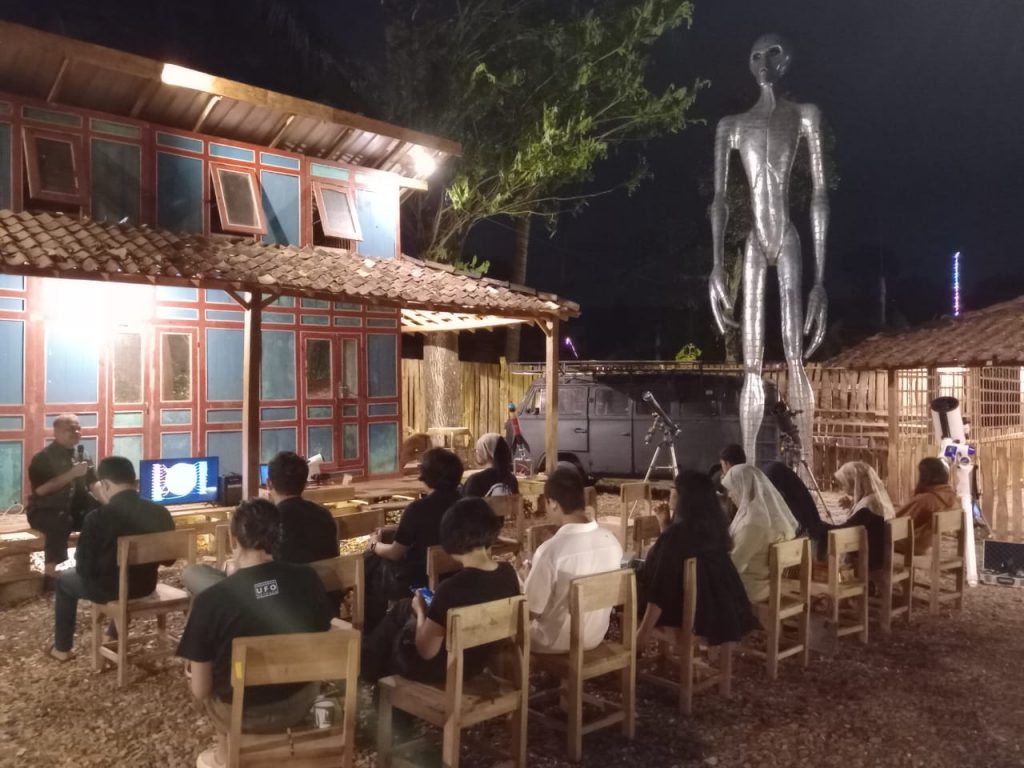 “Kegiatan ini merupakan tahap awal dari rangkaian kegiatan pembelajaran Astronomi dan Sains Antariksa yang akan diadakan secara rutin dan berkala di Kampung Alien, Kulon Progo ini,” kata Venzha. Baca Juga: Indonesia UFO Festival 2023 Luncurkan Kampung Alien PertamaKampung Alien adalah sebuah Laboratorium Alam Terbuka bagi pengembangan dan pembelajaran bidang Astronomi, Space Science, dan Space Exploration, yang diresmikan pada Juli silam, dalam rangkaian acara yang bertajuk “Indonesia UFO Festival 2023” dan bertepatan dengan peringatan “Indonesia UFO Day” atau Hari UFO Nasional yang jatuh pada setiap 21 Juli.