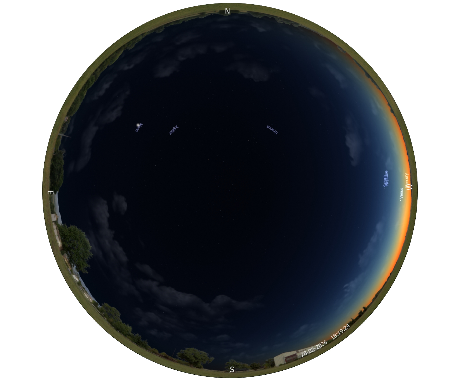Secara teknis, ya enam planet akan berada di atas cakrawala langit malam itu tepat setelah Matahari terbenam, bahkan selama beberapa hari ke depan. Namun faktanya kita hanya akan melihat satu saja diantara keenam benda langit tersebut. Merkurius, Venus dan Saturnus berada sangat rendah di langit Barat sehingga praktis takkan terlihat karena hilang silau cahaya Matahari. Sedangkan Uranus dan Neptunus tentu membutuhkan teleskop karena tidak dapat dilihat dengan mata telanjang. Kita mungkin masih dapat melihat planet Saturnus yang sangat rendah di langit Barat tapi itu akan sangat sulit karena terangnya cahaya Matahari yang masih menerangi langit. Sehingga hanya tersisa Jupiter sebagai satu-satunya planet yang bisa terlihat dengan mata telanjang di langit malam ini. Ia berada di sebelah barat Bulan yang tetap merupakan pemandangan fantastis dan sangat layak untuk disaksikan (jika tidak mendung atau hujan😁)