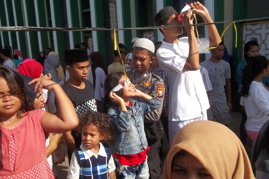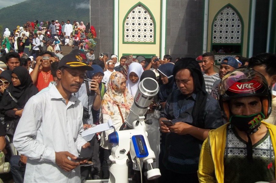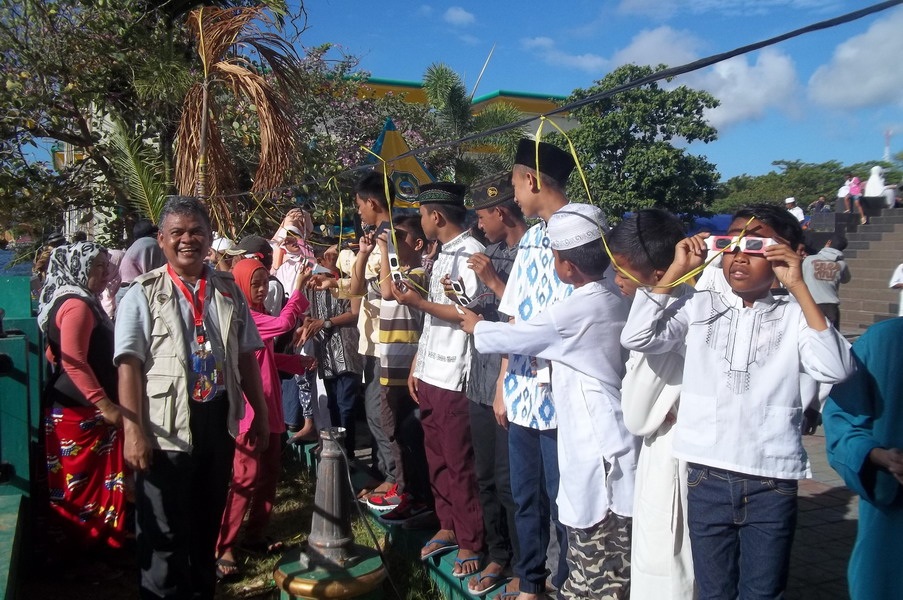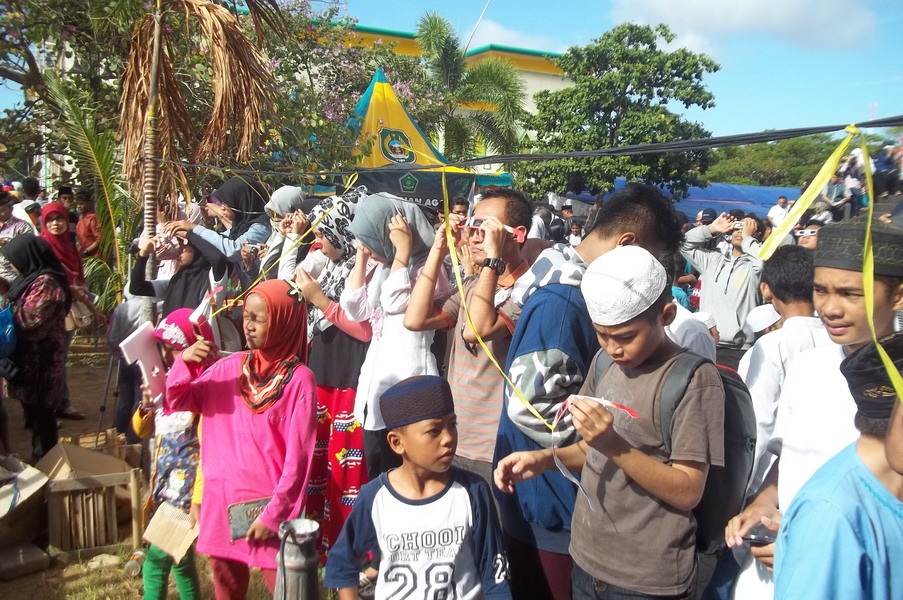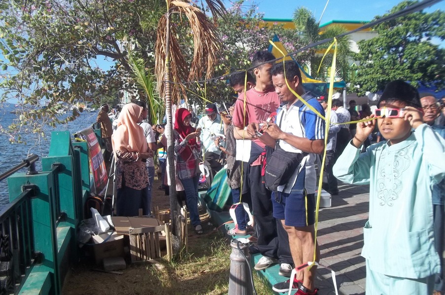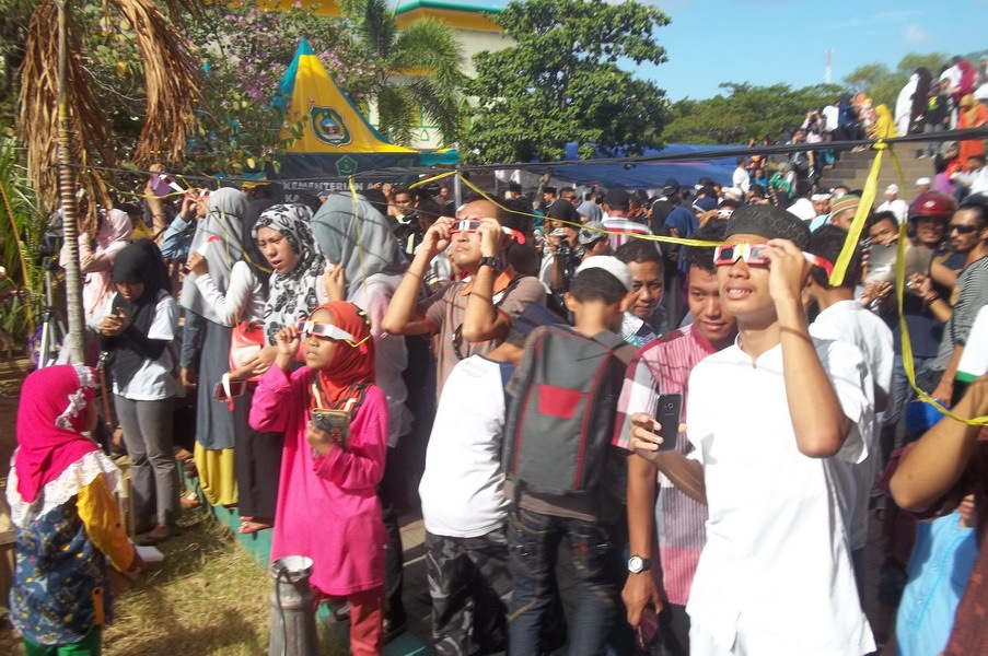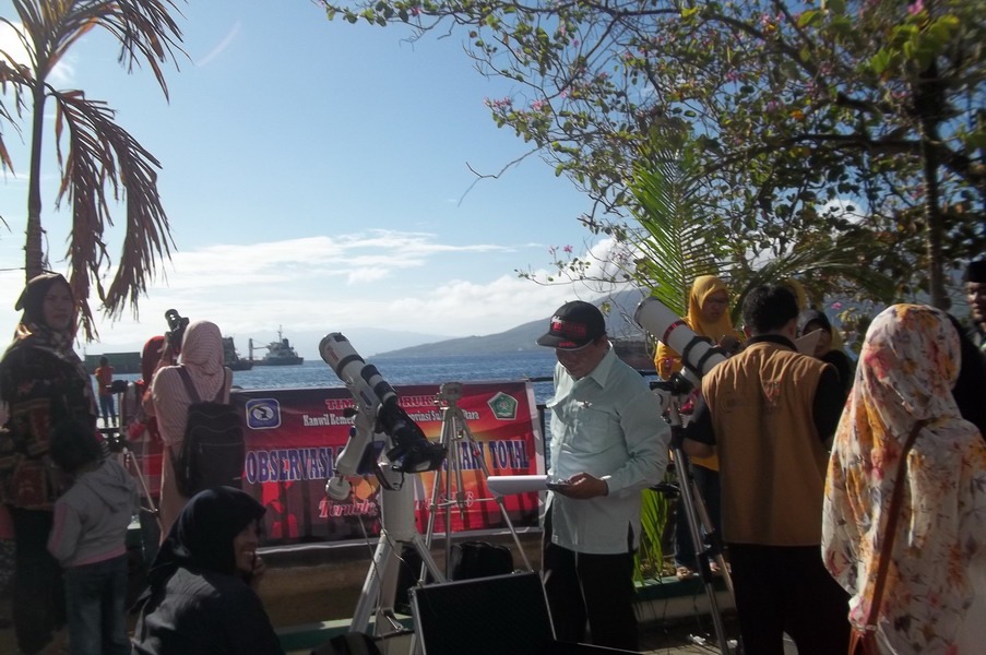 Kota Ternate menjadi salah satu pusat perhatian dunia pagi ini saat fenomena alam langka, Gerhana Matahari Total (GMT) 9 Maret 2016 yang melintasi wilayah Maluku Utara. Tim pengamat dari Griya Antariksa turut bergabung dengan ratusan peneliti internasional dan ribuan warga untuk menyaksikan detik-detik tertutupnya piringan Matahari oleh Bulan secara sempurna. Utusan Griya Antariksa Mutoha Arkanuddin ditunjuk oleh Tim Gerhana Universitas Ahmad Dahlan (TIGER UAD) bersama 5 orang anggota tim lainnya melakukan kegiatan sosialisasi dan pengamatan umum untuk publik pada hari terjadinya gerhana. Pengamatan berlangsung di samping Kompleks Masjid Raya An Muwwar Ternate. Pagi itu di seputaran masjid ribuan orang berjudel demi untuk ikut menyaksikan periswa langka Gerhana Matahari Total. Alhamdulillah cuaca cerah sehingga tahapan gerhana dari mulai sebagaian hingga totalitas berlangsung dapat disaksikan.