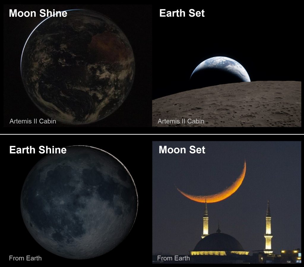 EARTHSET – MOONSHINE | Misi Artemis II baru saja mencatatkan sejarah baru pada awal April 2026 ini dengan merilis foto-foto Bumi terbaru yang diambil langsung oleh mata manusia setelah lebih dari 50 tahun. Awak yang mengabadikan momen ini adalah Reid Wiseman, Victor Glover, Christina Koch, dan Jeremy Hansen. Foto-foto ini menjadi bukti visual pertama bagi manusia di era modern tentang bentuk Bumi yang utuh di kedalaman ruang angkasa. Foto “Earthset” (Bumi terbenam) diambil pada 6 April 2026, foto ini menunjukkan Bumi yang perlahan menghilang di balik cakrawala Bulan saat kapsul Orion melintas di sisi jauh Bulan. Kecuali itu fenomena yang hanya bisa disaksikan oleh awak kabin Orion tersebut adalah “Moonshine” yang di Bumi dikenal sebagai “Earthshine” ketika Bulan sabit. Foto ini memperlihatkan Bumi dalam fase “sabit biru tipis” yang indah dengan sisi gelapnya yang tersinari oleh cahaya Bulan. Ketika foto Bumi ini dibuat terang banyak yang berpendapat mengenai jeleknya kualitas foto dibanding foto misi Apollo dengan teknologi jadul tapi lebih baik. Padahal foto misi Apollo itu adalah foto siang sedangkan foto Artemis ini foto malam sehingga jelas kualitasnya berbeda. Foto-foto tersebut diambil dari jarak sekitar 64.000 hingga 67.000 kilometer saat mereka meninggalkan orbit Bumi menuju Bulan. Ada foto-foto apa lagi dari misi Artemis II ini? mari kita tunggu saja.