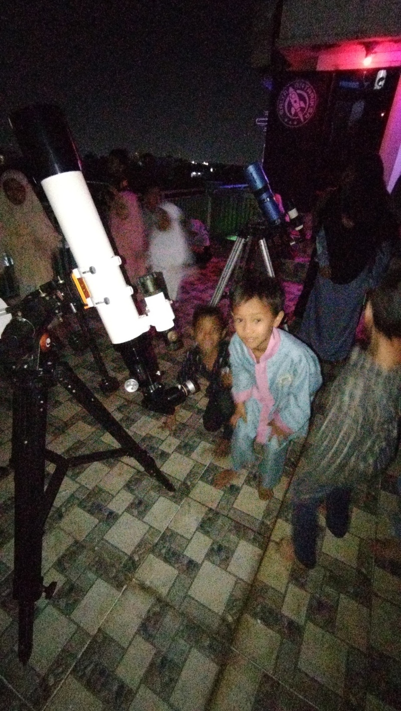 Sebanyak 12 teleskop dan 4 binokuler disiapkan untuk mendukung pengamatan langsung ke permukaan bulan. Pengunjung diajak menyaksikan detail menakjubkan seperti kawah, dataran tinggi, hingga garis terminator yang membelah siang dan malam di permukaan lunar. Di sudut lain, anak-anak tampak antusias duduk melingkar mendengarkan dongeng astronomi, sementara remaja dan keluarga menikmati nonton bareng film bertema luar angkasa. Tak kalah menarik, permainan interaktif seperti rocket games dan astro games menjadi magnet tersendiri yang menambah semarak suasana malam itu. Bagaimana tidak hampir 50 anak-anak yang datang dari berbagai penjuru khsusunya kampung terdekat disuguhi permainan edukatif roket yang dilombakan, membuat mereka sangat menikmati perayaan INOMN malam itu.
